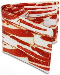 Here is a bacon wallet. Yes, how lucky we are to have a bacon wallet to store all of our money and cards!